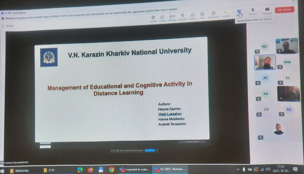 Навчально-науковий інститут «Українська інженерно-педагогічна академія» Харківського національного університету імені В.Н. Каразіна на ICL2025 представляли: заступник директора з наукової роботи, доктор технічних наук Олександр Купріянов, заступник директора з науково-педагогічної роботи, доктор педагогічних наук Марина Васильєва, професор кафедри педагогіки, методики та менеджменту освіти, доктор педагогічних наук Олена Коваленко, професор кафедри інформаційних, комп’ютерних технологій і математики, доктор педагогічних наук Тетяна Бондаренко, професор кафедри педагогіки, методики та менеджменту освіти, доктор педагогічних наук Микола Лазарєв, доцент кафедри педагогіки, методики та менеджменту освіти, кандидат педагогічних наук Наталія Корольова, доцент кафедри педагогіки, методики та менеджменту освіти, кандидат педагогічних наук Юлія Білоцерківська, доцент кафедри педагогіки, методики та менеджменту освіти, кандидат педагогічних наук Тетяна Калініченко, доцент кафедри педагогіки, методики та менеджменту освіти, кандидат педагогічних наук Наталія Рубан, асистент кафедри педагогіки, методики та менеджменту освіти Світлана Литвин, доцент кафедри інформаційних, комп’ютерних технологій і математики, кандидат педагогічних наук Галина Сажко, доцент кафедри іншомовної підготовки, європейської інтеграції та міжнародного співробітництва, кандидат педагогічних наук Ганна Корнюш, доцент кафедри іншомовної підготовки, європейської інтеграції та міжнародного співробітництва Олена Шапаренко, доцент кафедри економіки та менеджменту, кандидат економічних наук Юлія Федорова, доцент кафедри автоматизації, метрології та енергоефективних технологій, кандидат технічних наук Ганна Грінченко, доцент кафедри автоматизації, метрології та енергоефективних технологій, кандидат технічних наук Наталія Антоненко, доцент кафедри електротехніки та електроенергетики, кандидат технічних наук Артем Чернюк, доцент кафедри електротехніки та електроенергетики, кандидат технічних наук Юлія Олейник, доцент кафедри електротехніки та електроенергетики, кандидат технічних наук Костянтин Бровко, доцент кафедри електротехніки та електроенергетики, кандидат педагогічних наук Павло Васюченко, доцент кафедри електротехніки та електроенергетики, кандидат технічних наук Анатолій Тарасенко, доцент кафедри електротехніки та електроенергетики, кандидат технічних наук Ганна Мосієнко, аспірант кафедри автоматизації, метрології та енергоефективних технологій Ліна Фатєєва, аспірант кафедри інформаційних, комп’ютерних технологій і математики Віталій Лукашов, аспірант кафедри автоматизації, метрології та енергоефективних технологій Андрій Мацько.